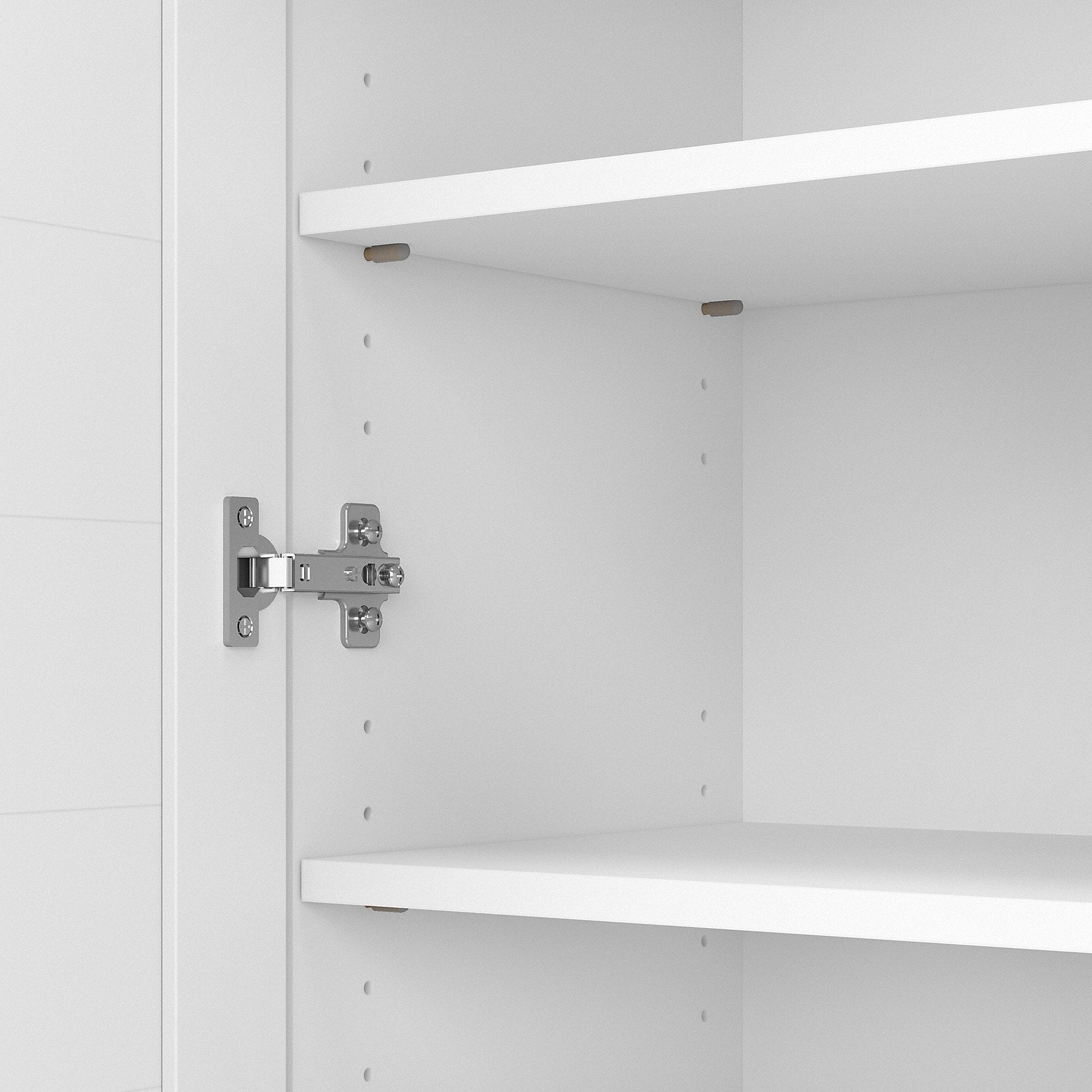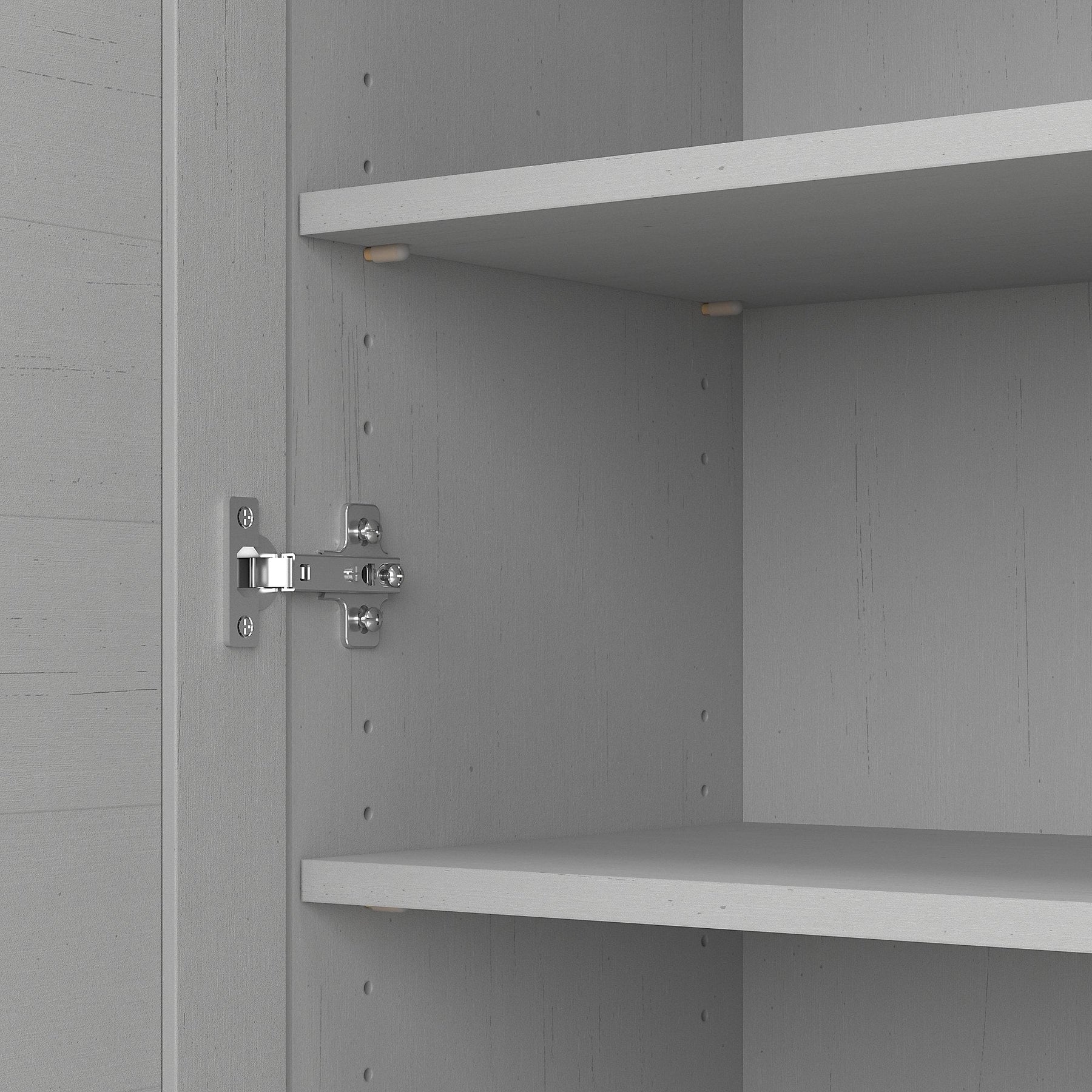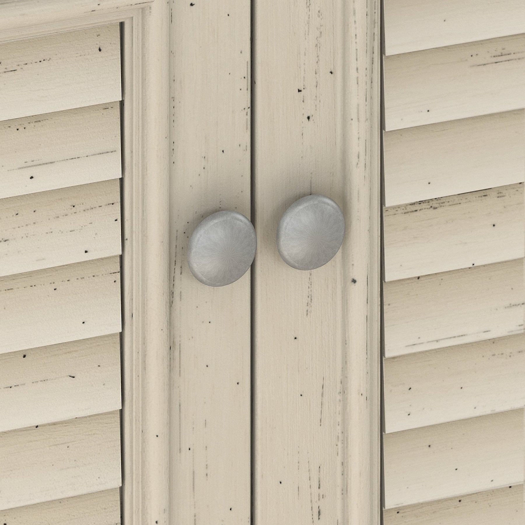 Organize your home office or living space with the Bush Furniture Fairview Small Storage Cabinet with Doors and Shelves. Its modern farmhouse style, with a slightly weathered finish and Antique Pewter hardware, creates a cozy and welcoming atmosphere. The 32W x 13D x 30H cabinet design fits perfectly in small spaces and provides ample storage capacity with three shelves, two of which are adjustable. The louvered cabinet doors add a stylish touch while concealing household items, office supplies, and more. With multiple finish options, including Antique Black with Hansen Cherry accents, Antique White with Tea Maple accents, Pure White with Shiplap Gray accents, or solid Cape Cod Gray, this farmhouse cabinet complements any decor. Tested to meet ANSI/SOHO quality standards for safety and performance, this sturdy cabinet is backed by the Bush Furniture 6 Year Manufacturer's Warranty.
