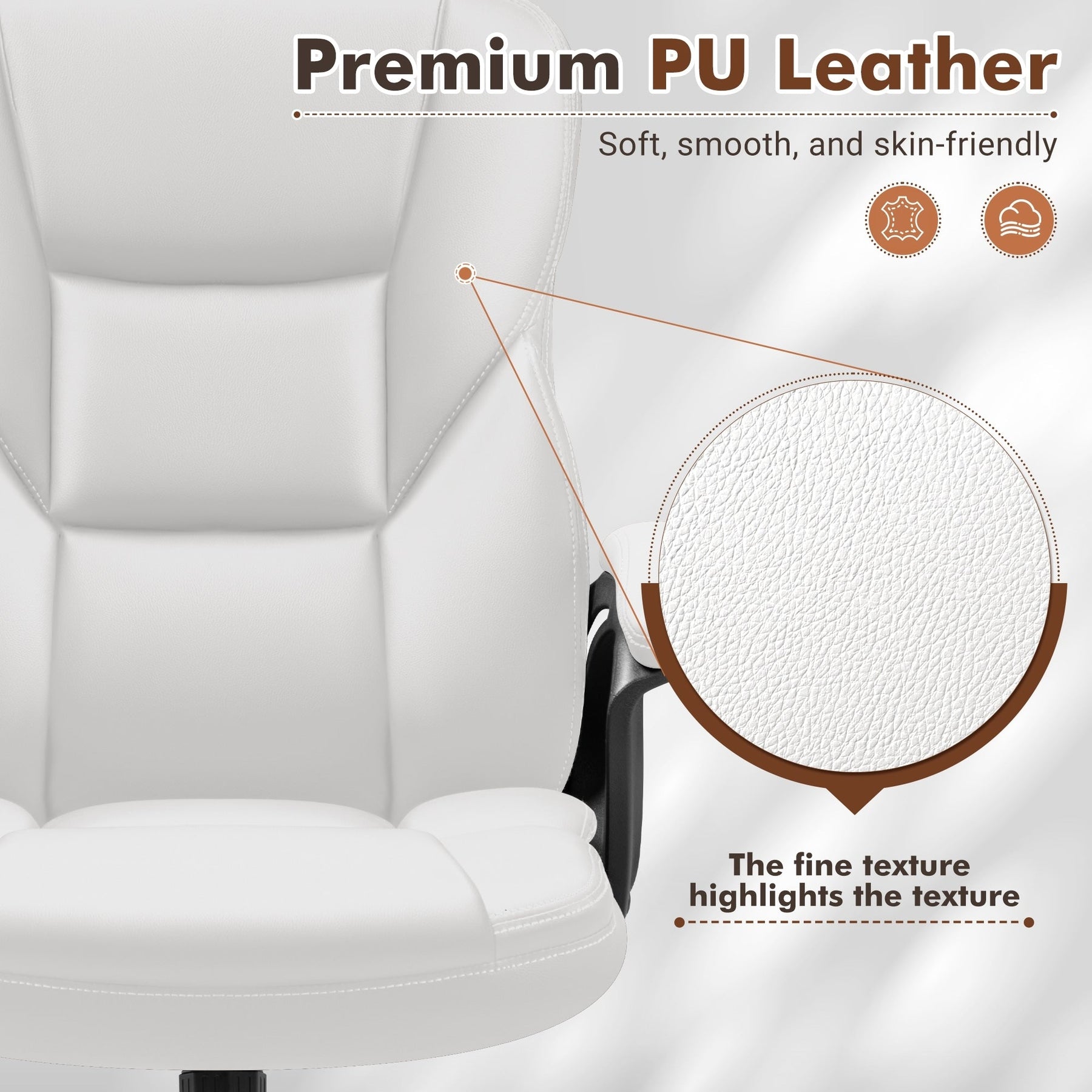 Work comfortably while sitting in this executive ergonomic computer chair. This chair has a cushioned back and upholstered seat that provides extra support. It features thick padding and soft texture. A 360-degree swivel, heavy-duty base and smooth-rolling casters make a superb stable structure.