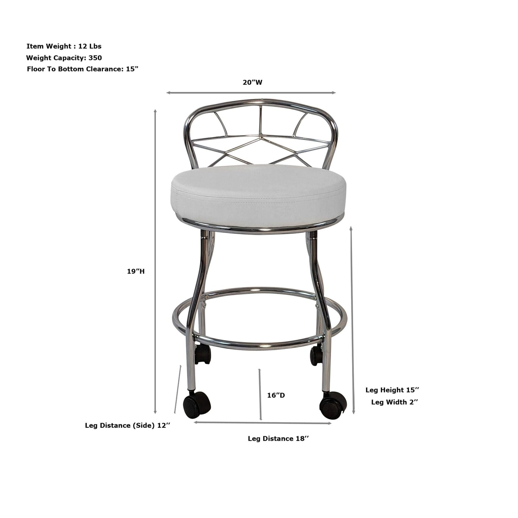 This elegantly designed bathroom/dressing vanity stool is crafted with the perfect proportions. Lovely and functional with four casters for easy mobility. The uniquely and attractively designed back provides simple and reliable support for your dressing needs.