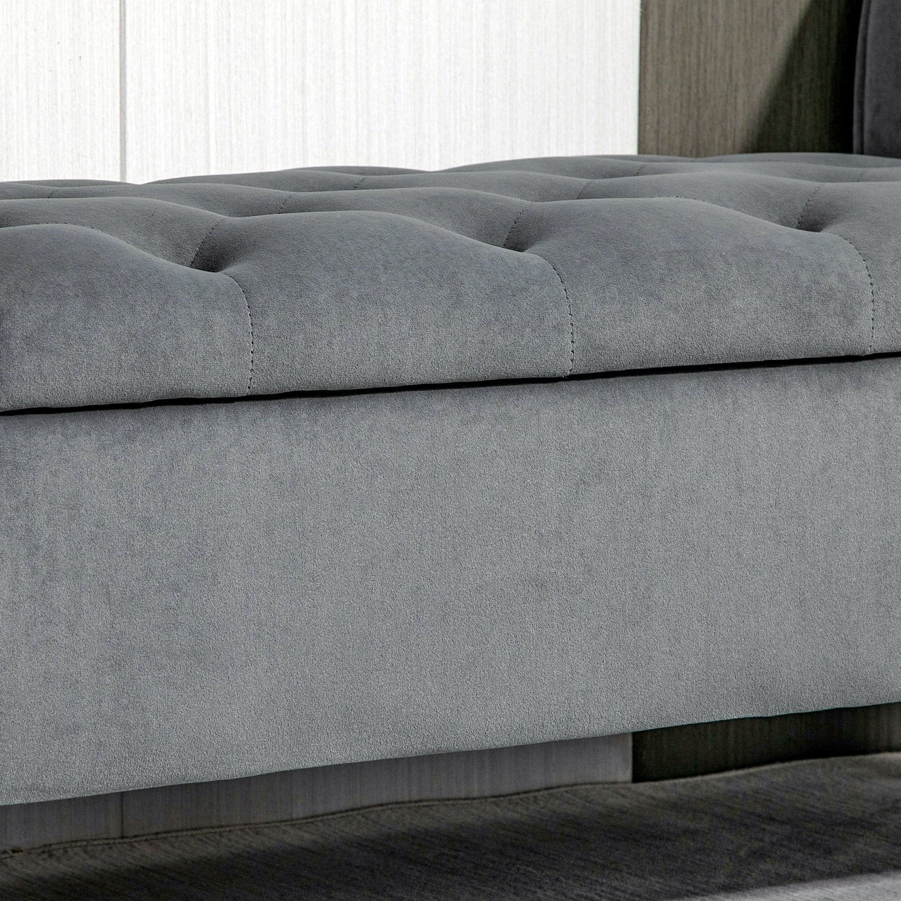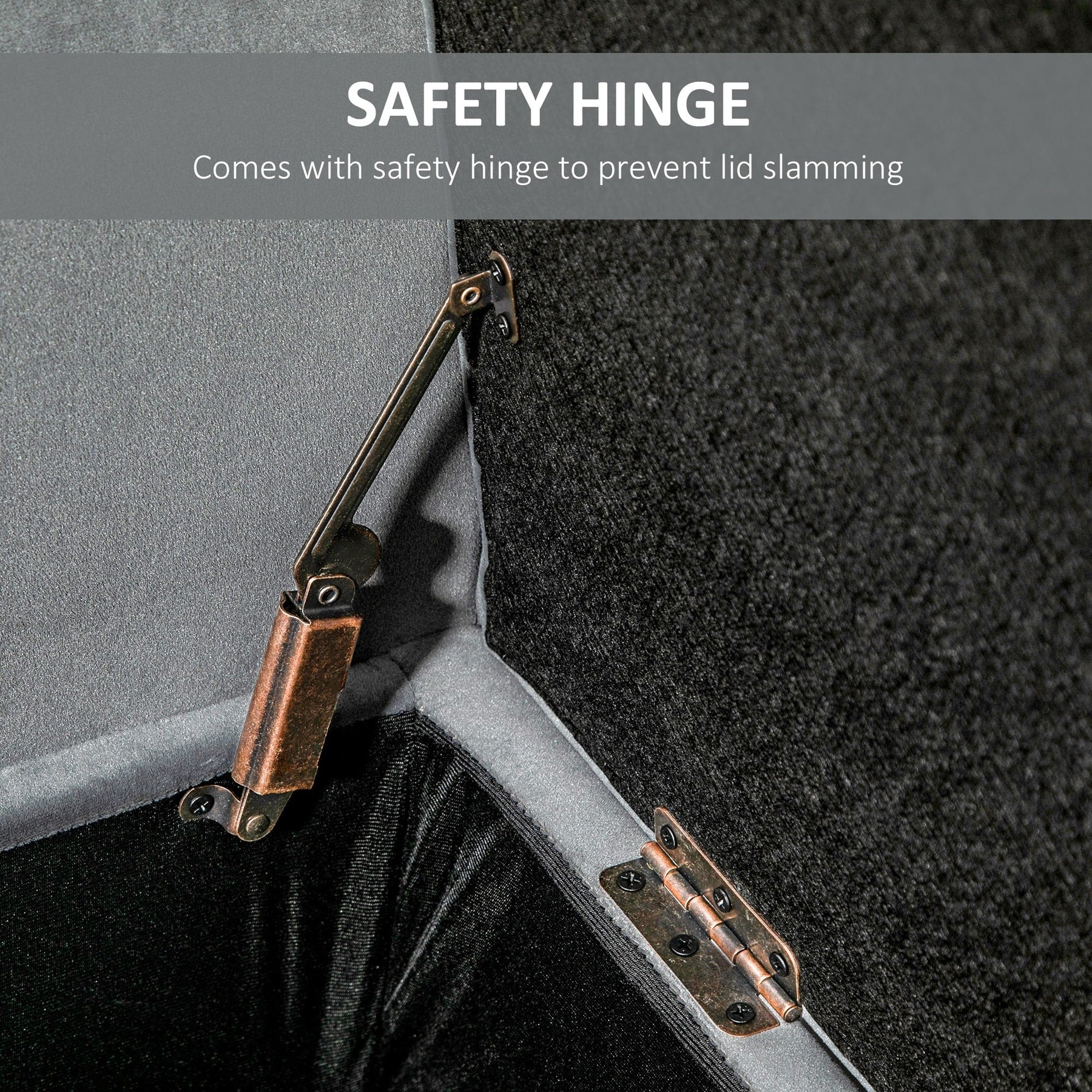 Add a touch of glamour and functionality to your home with this button-tufted storage ottoman bench from HOMCOM. The velvet-touch polyester fabric and rolled armrests make for a stylish and comfortable addition to any room, while the flip-top seat provides ample storage space for books, toys, or blankets. The sturdy rubberwood legs ensure stability and durability. Assembly is required for this elegant piece that is perfect for your entryway, living room, or window side.