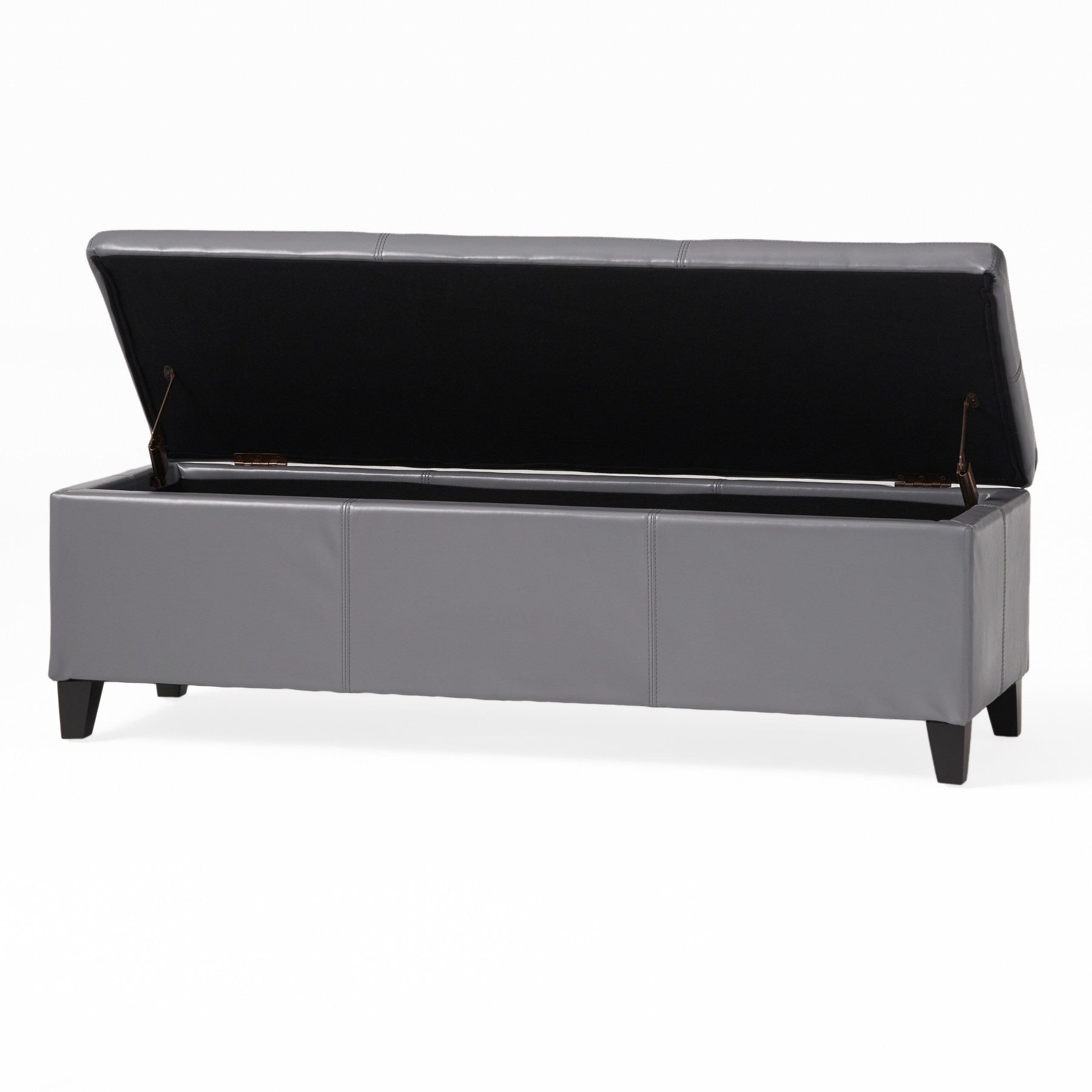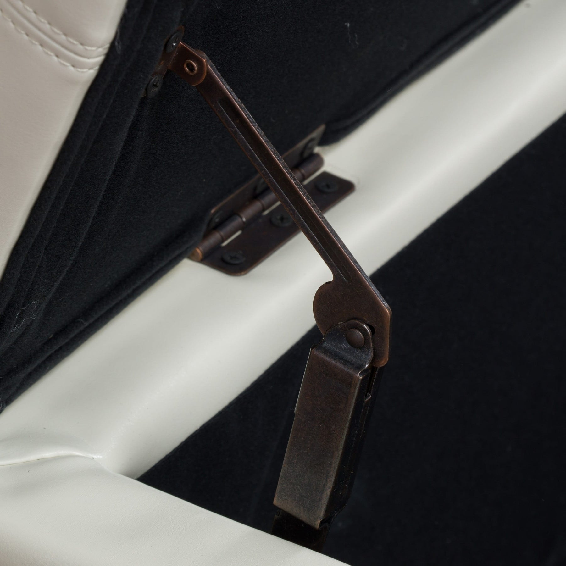 This delightful ottoman bench boasts convenient storage space while offering your decor a stunning look. With smooth upholstery with delicate stitching and soft pressure hinges, this ottoman is an ideal addition for any home.
