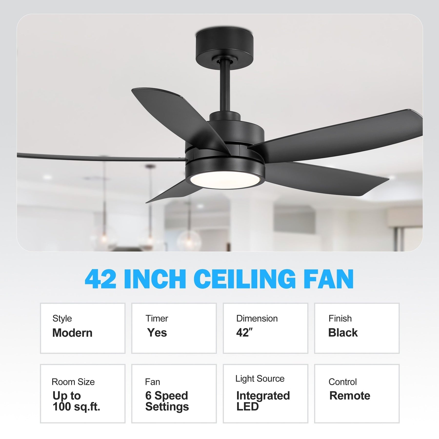 Lend a modern touch to your decor with the LED 42/52/65in fan. The propeller-inspired 5-blade design ensures optimum air circulation while creating an enhanced visual appeal. It features a acrylic lampshade that creates a pleasing ambiance with its unique design and black/white/gold finish, this ceiling fan complements various styles of decor.
