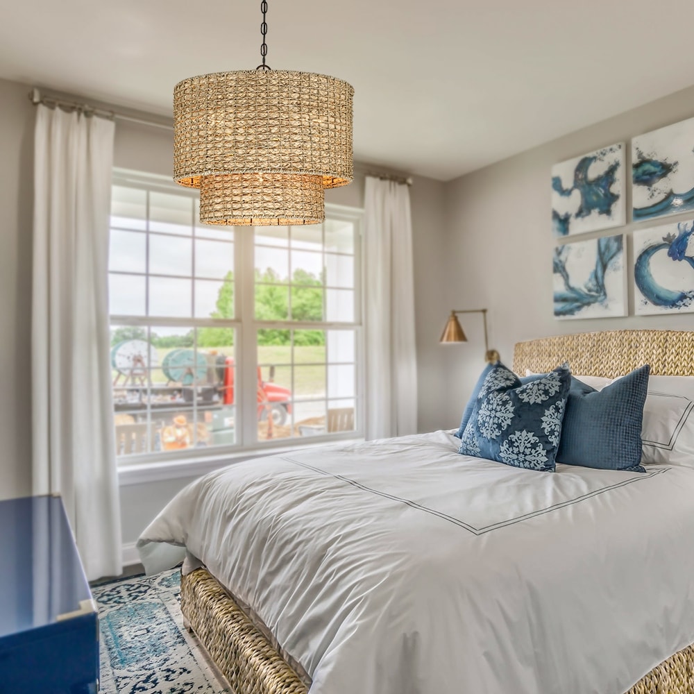 Nothing adds warmth and a casual inviting vibe like a woven chandelier. This pendant light is meticulously hand woven of natural seagrass and rattan in an oversized drum silhouette. Inside, a 4-light cluster in matte black casts generous light and creates interesting shadow patterns on the walls of your entry, dining room or bedroom. This collection can work with a variety of boho decors and even work in homes with coastal or farmhouse styling, which is an ideal selection for over your kitchen island, living room, foyer, or suspended above your dining room table or bedrooms of any kind