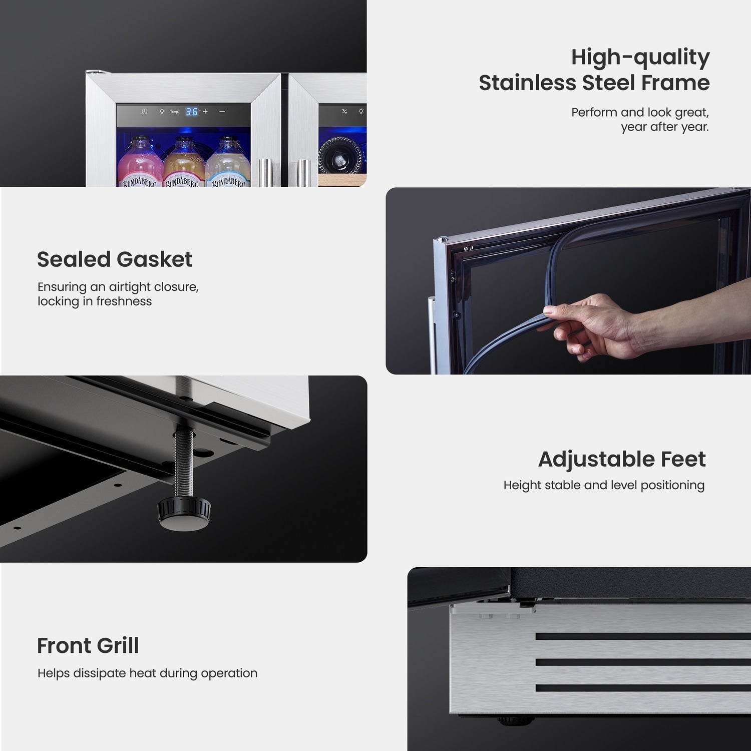 • Secure and Stylish Design: UV-resistant glass and stainless steel construction add durability. This wine beverage cooler also complements any home decor with its sleek design.