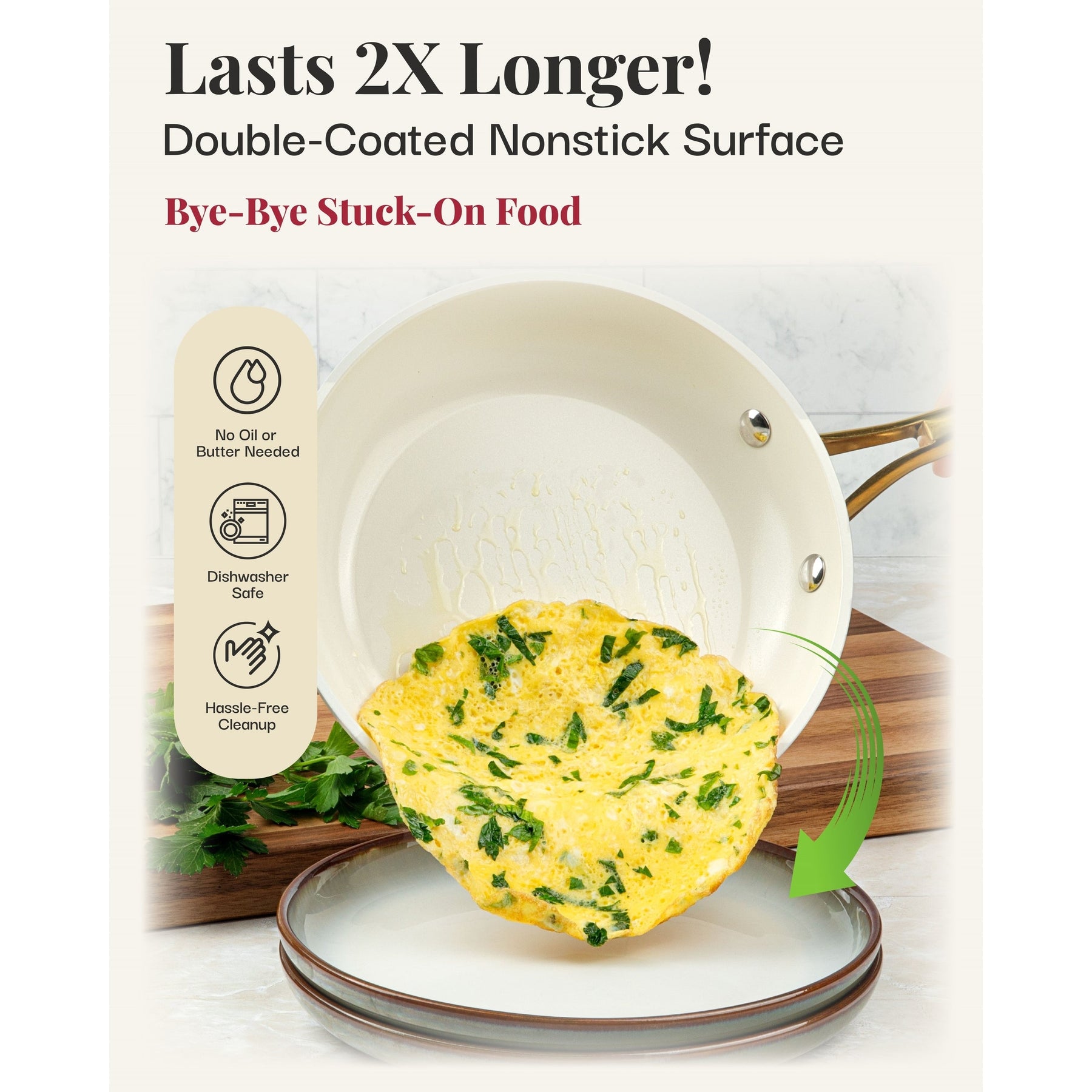 • Ultra-Durable Nonstick Ceramic Coating: Features an advanced ceramic coating that ensures food easily slides off the surface, promoting healthier cooking with minimal oil or butter needed.
