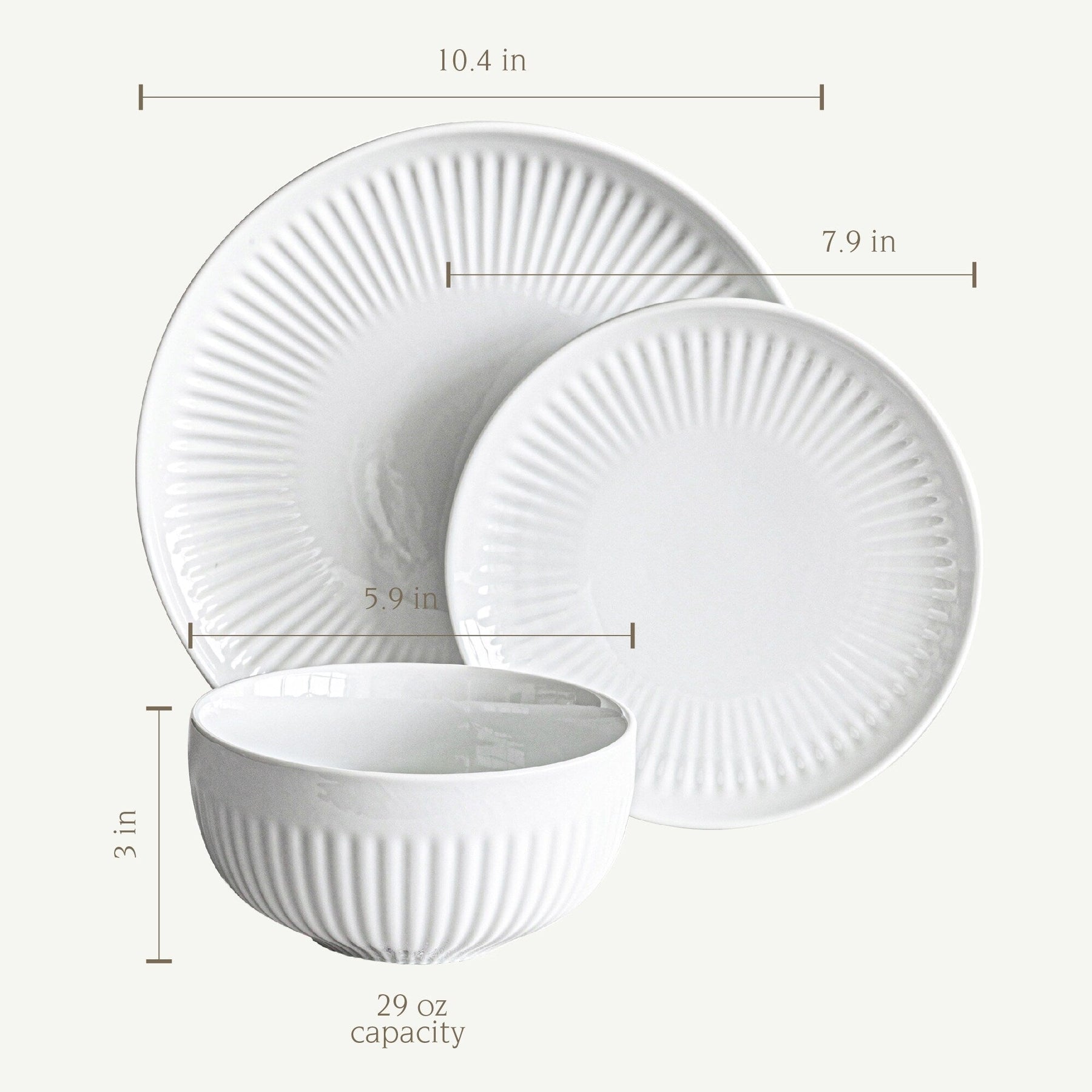 Our 24-Piece Fluted Dinnerware Set brings practicality and style to your table with service for 6. This comprehensive dinnerware set includes plates and bowls for six, ensuring you're well-prepared for any meal. The subtle fluted design adds a touch of texture to your dining experience, making it perfect for everyday use or casual gatherings with friends and family. Choose this dish set for a reliable addition to your kitchen that effortlessly combines functionality and flair, enhancing your daily dining routine.