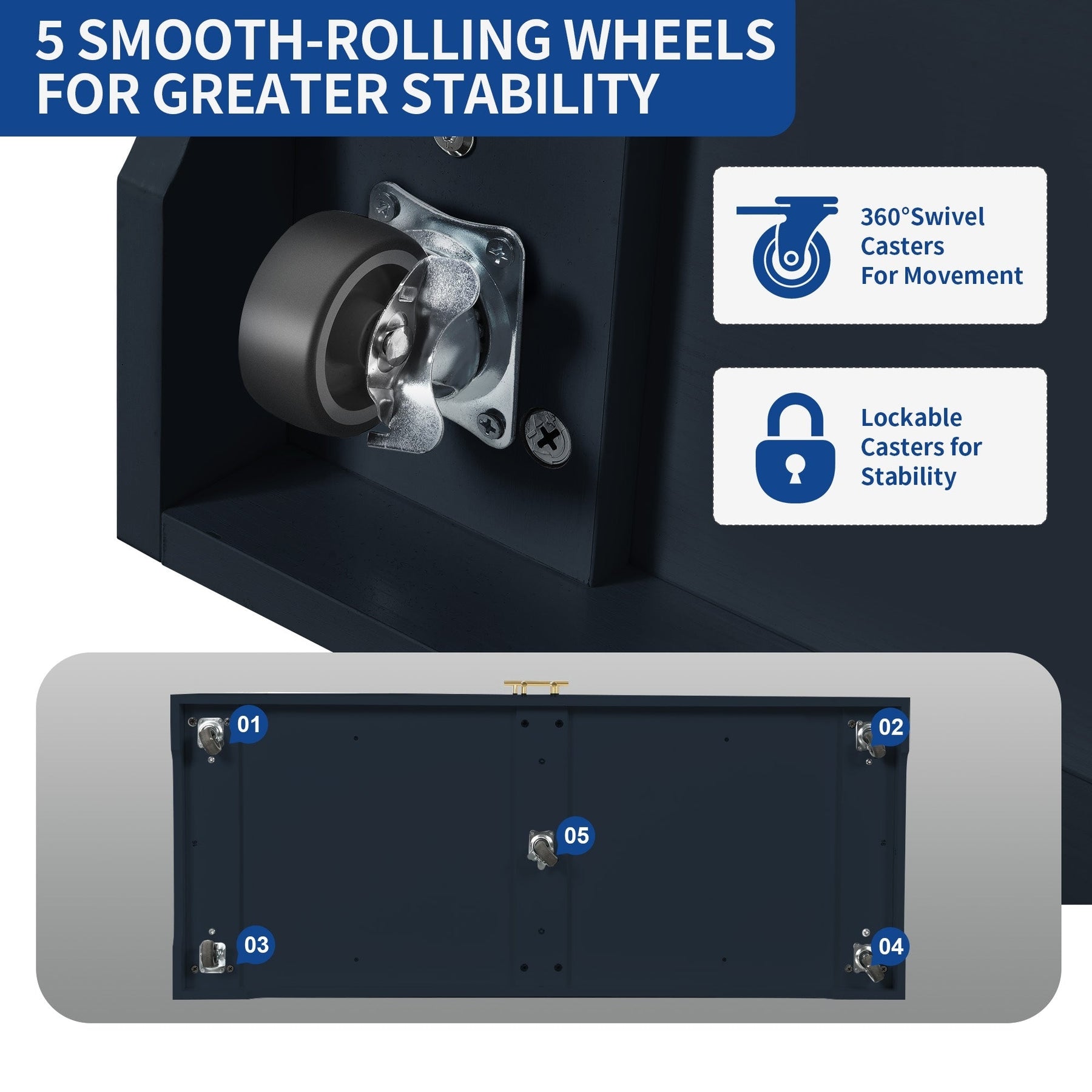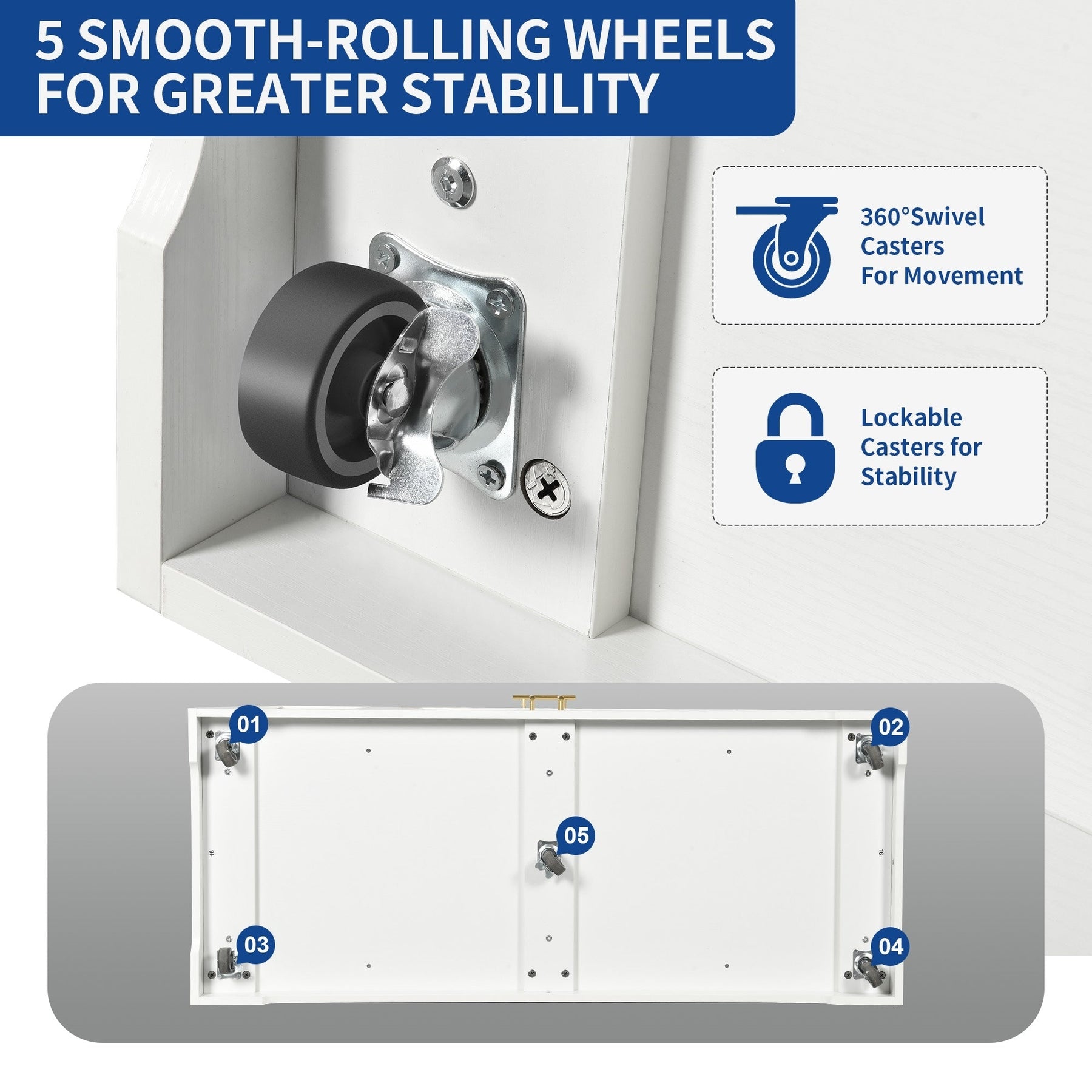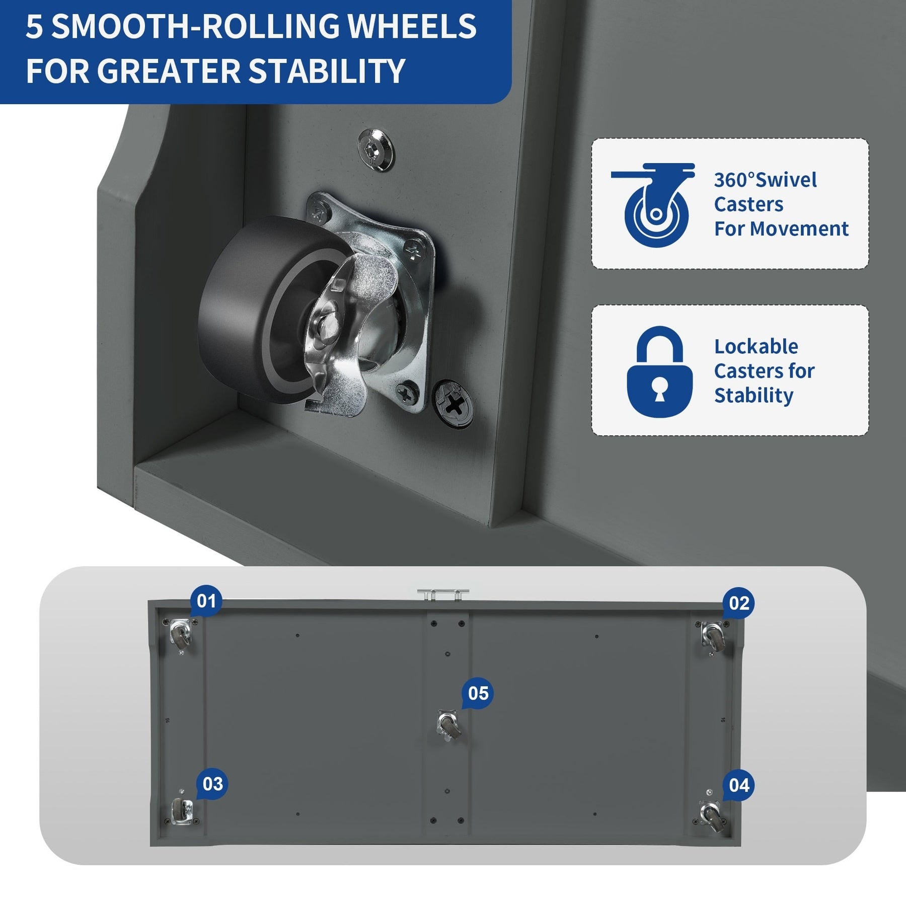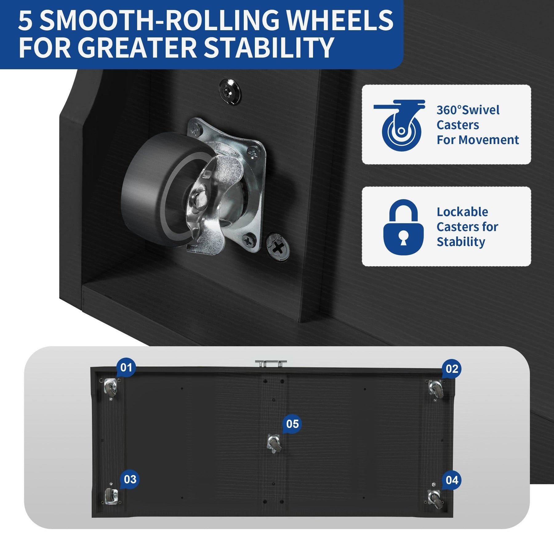 - Lockable wheels for stable positioning and easy mobility.