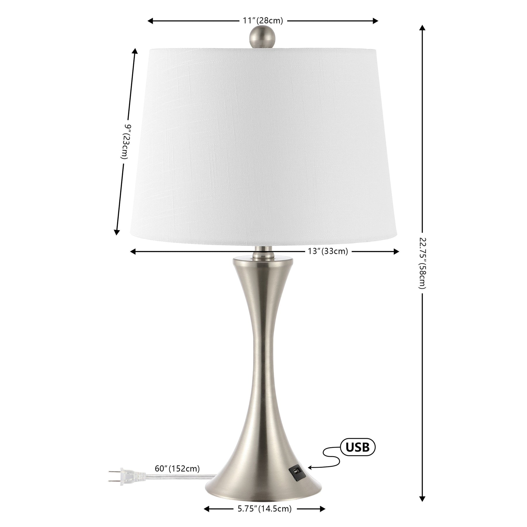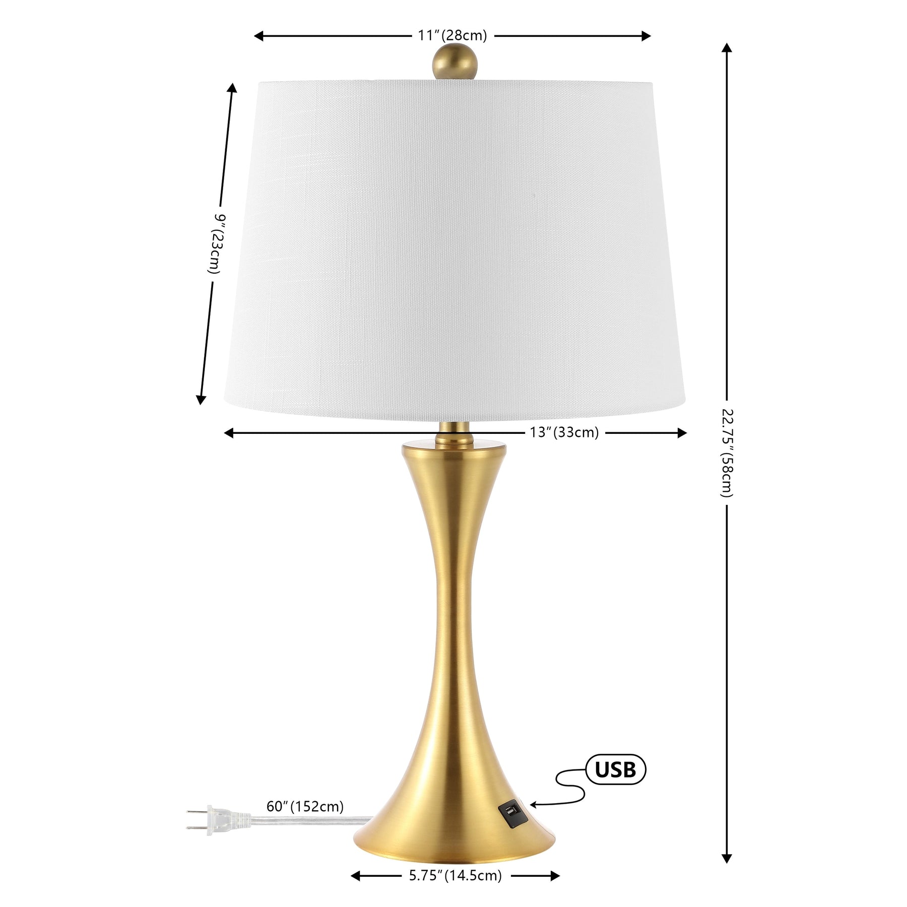 Makena 22.75 Modern Glam Iron Hourglass LED Table Lamp with USB Charging Port, (Set of 2) by JONATHAN Y