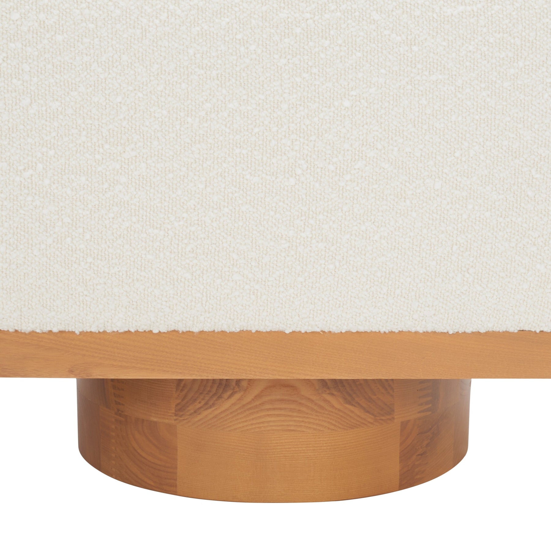 Bring any dull corner to life with our comfy and versatile bench. The bench features a comfortable and generously padded seat. Accented with the warm tones and texture of ash wood, our bench remains elevated upon chunky cylindrical legs. It is upscaled with plush textures of boucle in a charming color. A perfect marriage of form and function, our bench can become the perfect complement to your entryway, bedroom, or any place that needs extra seating.