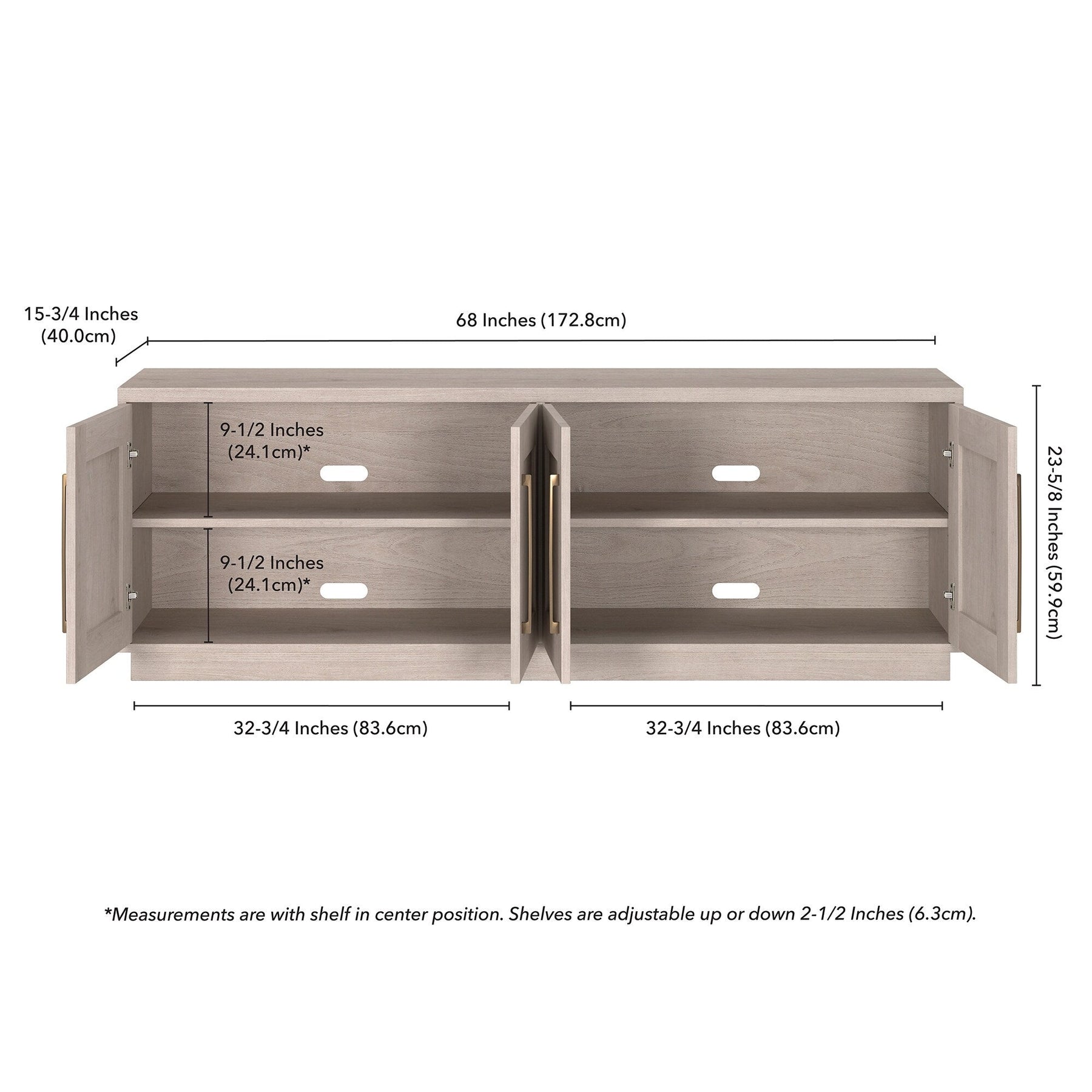 •  Features four doors with enclosed cabinets and 4 shelves for ample storage.