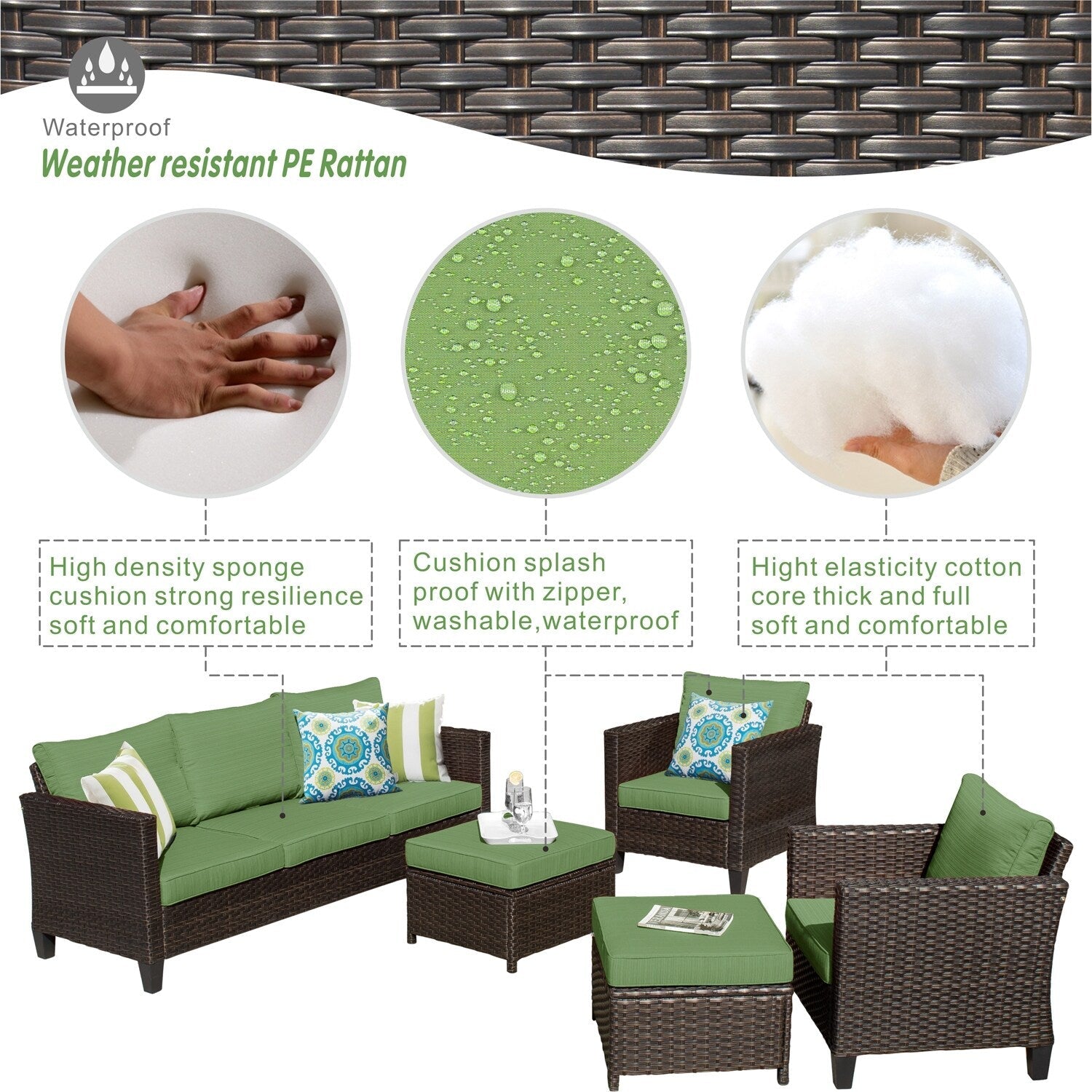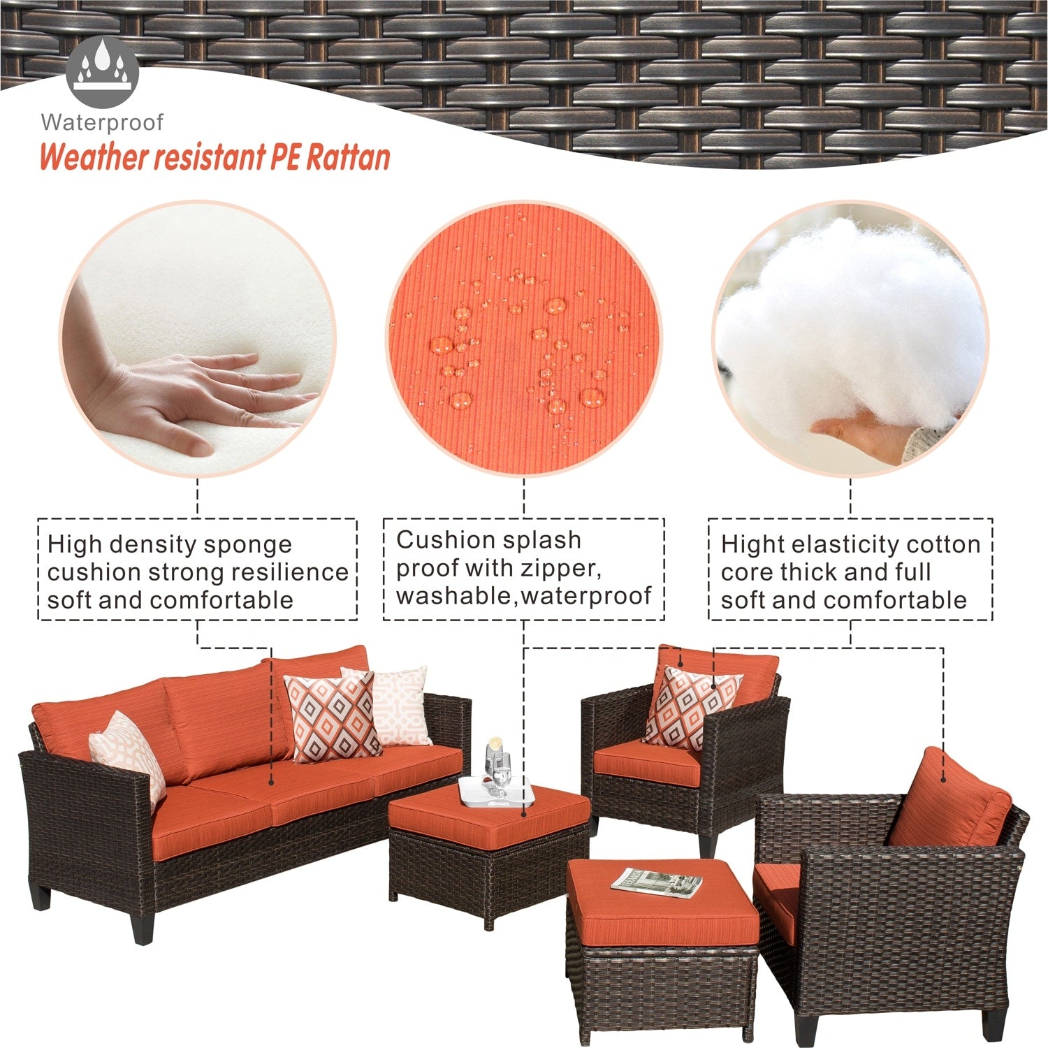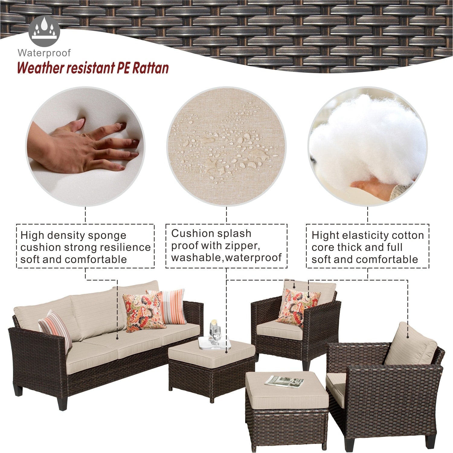 Water-Resistant & Weather-Ready: The cushions and furniture are designed to resist water, making them ideal for withstanding light rain or snow. While this set handles most weather conditions with ease, it's best to protect it from extreme weather for longevity.
