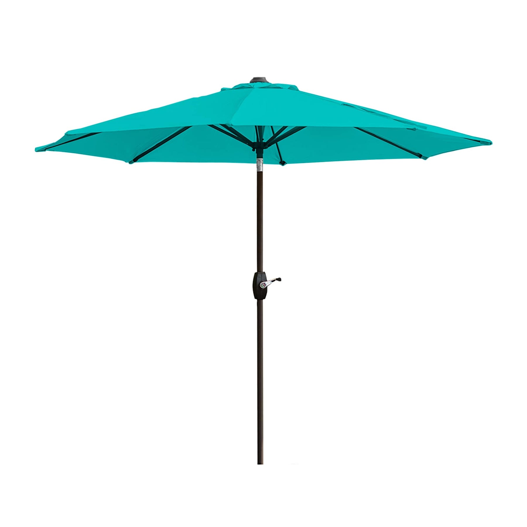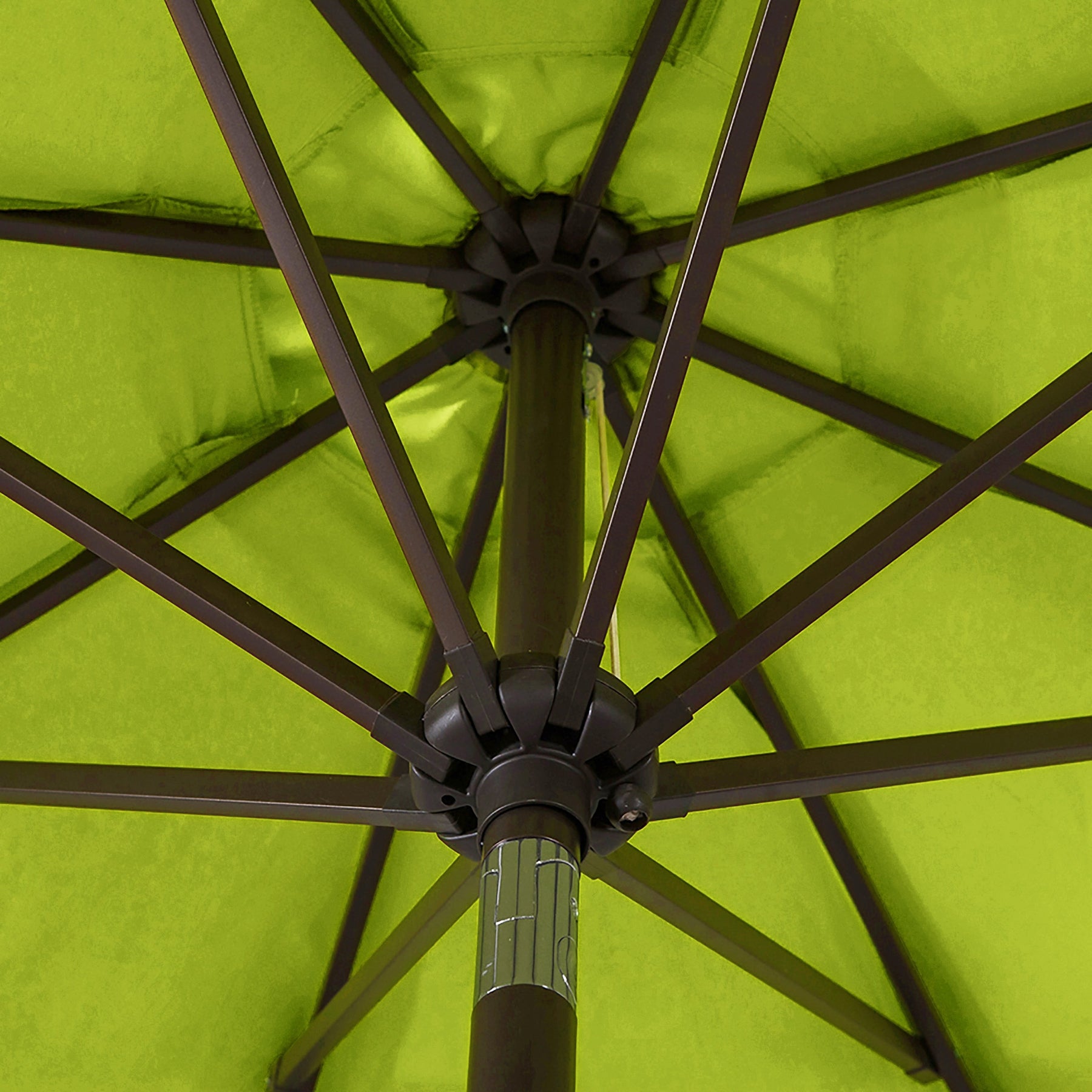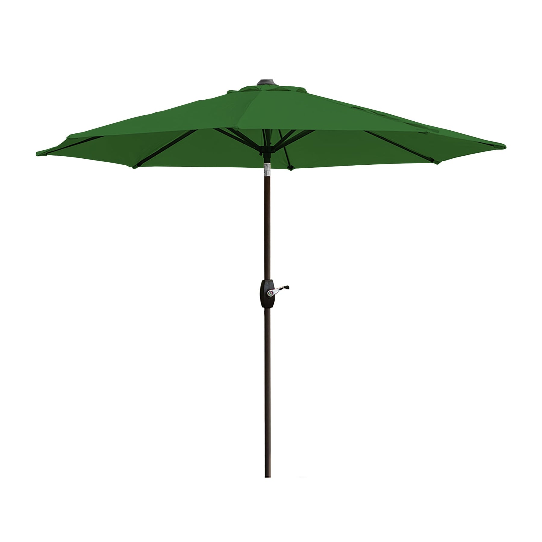 Add some shade to your home with this essential umbrella and base weight set!. Designed with style and durability in mind, this piece is built with an 8 rib steel frame. The polyester fabric blocks up to 95% of UV rays to keep yourself while being fade and water resistant. A push-button tilt mechanism lets you adjust as you please, so you can get just the right amount of sun! The best part is, both are easy to clean and require minimal maintenance!