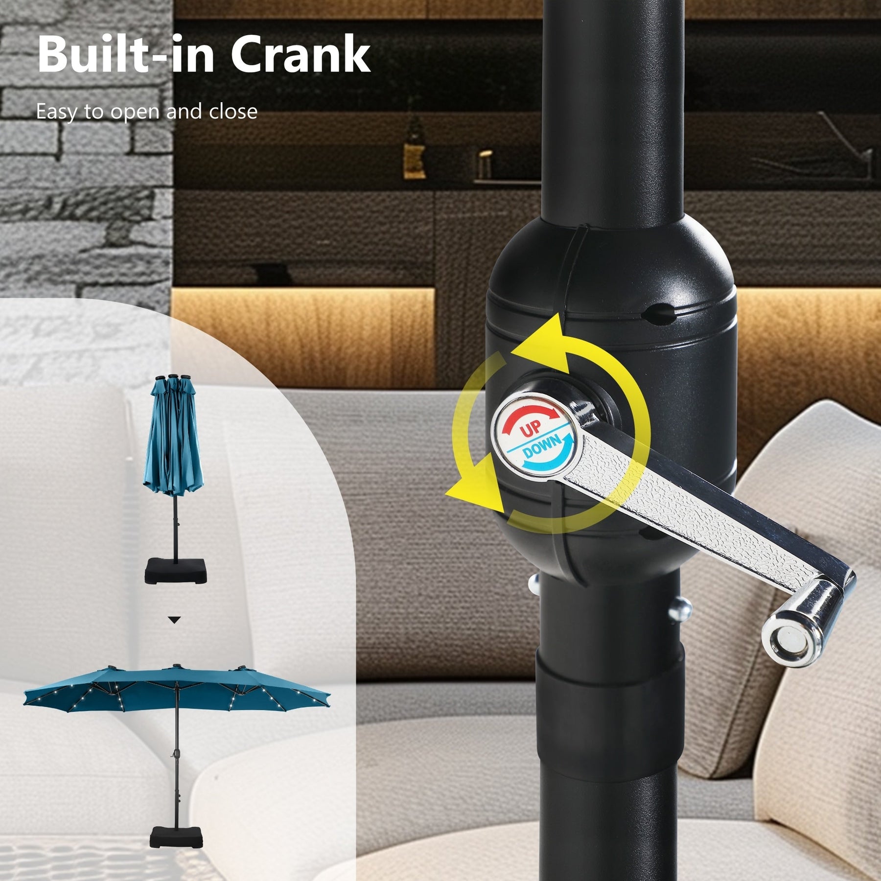 MAISON ARTS 15-foot Rectangular Crank Double-sided Outdoor Market Umbrella Solar LED Lighted Patio Umbrella with Base Included