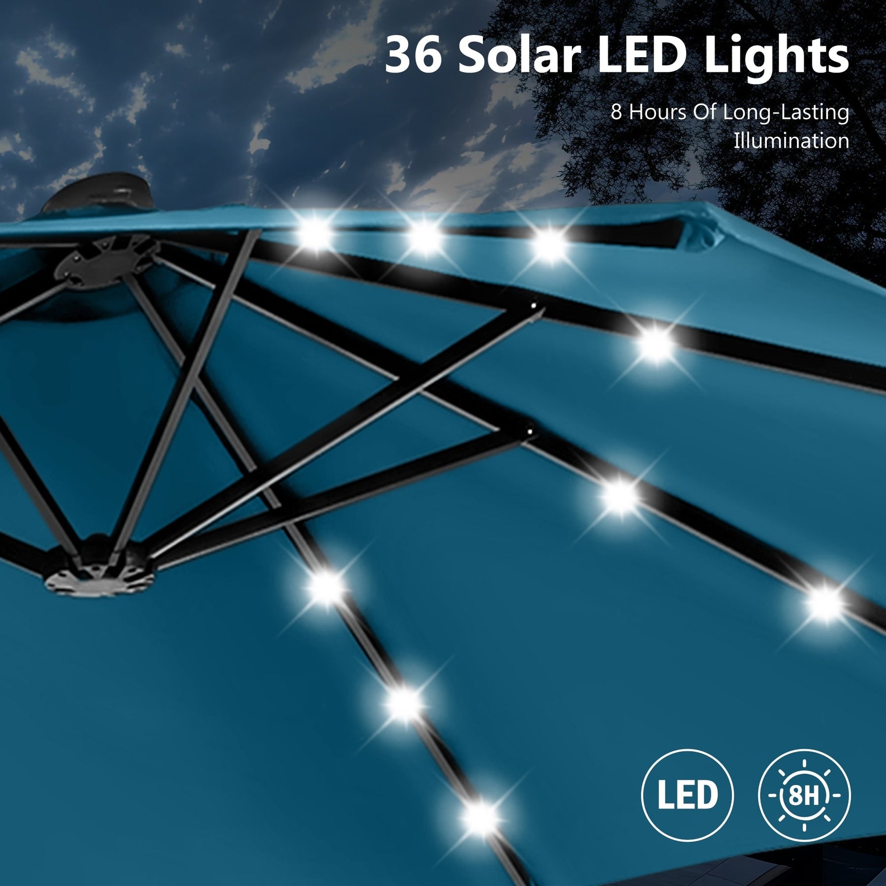 • Convenient LED Lighting: Enjoy your outdoor space day and night with 36 evenly-placed LED lights along the ribs of the umbrella. The solar-powered panel ensures you save energy while still enjoying bright illumination when you need it.
