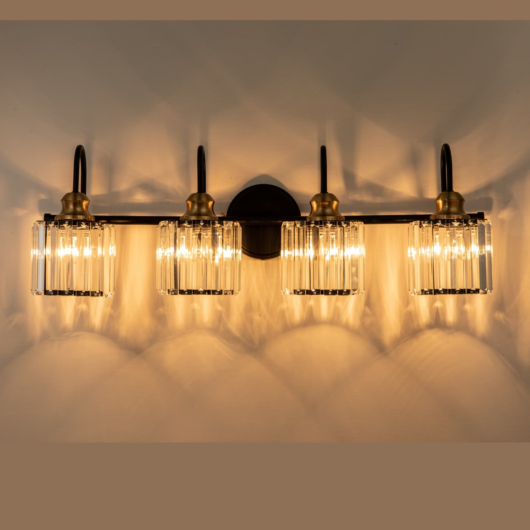 This contemporary luxury linear bathroom vanity light features a sturdy metal frame and a precision-cutting crystal shade, enhancing the luxury and sophistication of your bathroom's decor. Available in 3-light and 4-light options, you can choose the black or chrome vanity light to achieve the best decorative effect for your room. Each crystal lampshade emits a beautiful spectrum of colors even under natural light. When lit, the crystal bars and the linear fixture light work together to create enchanting light and shadows in your space. Install this modern luxury linear crystal bathroom wall light, and you will surely receive many compliments!