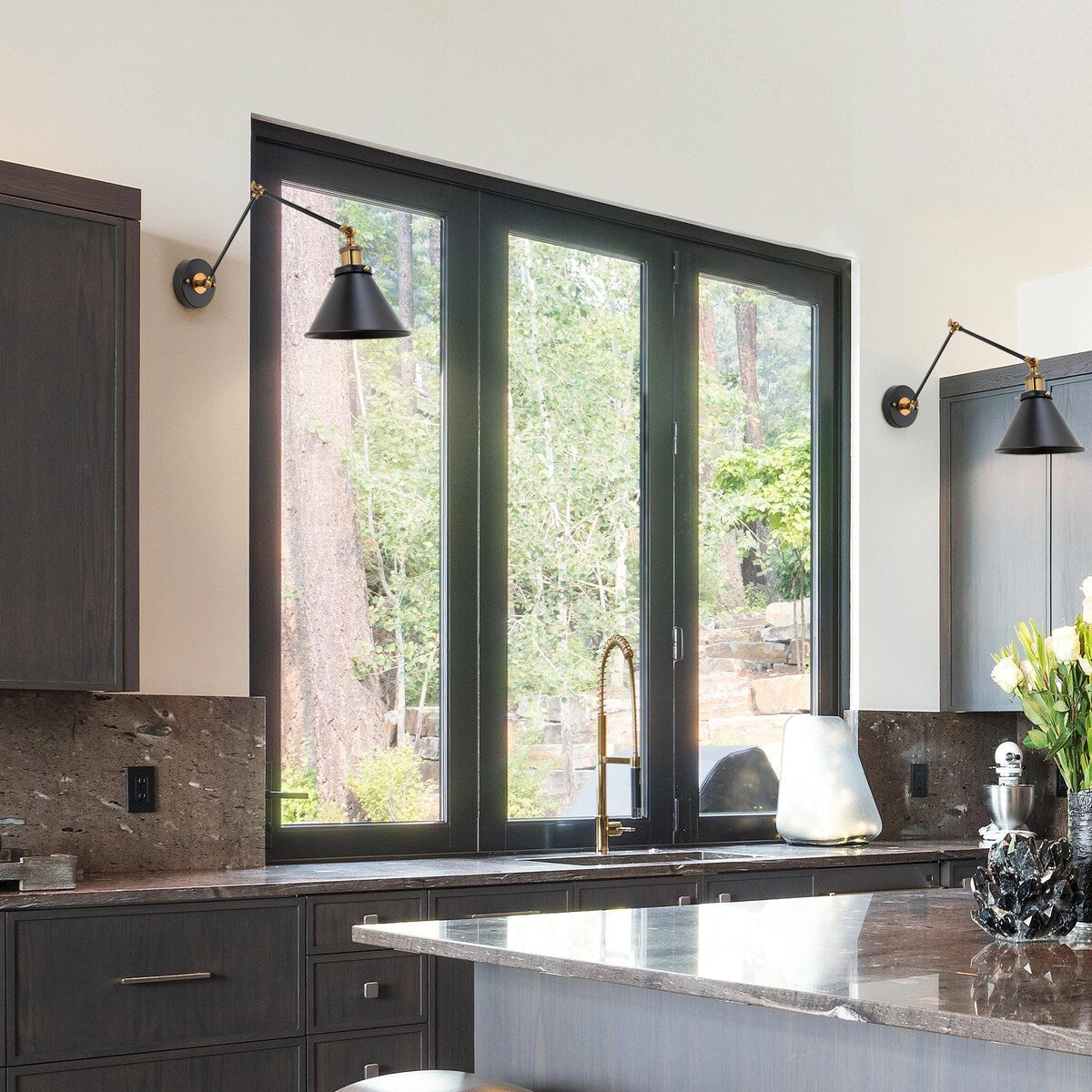 Add a touch of elegance and functionality to your decor with the Malryn Set of 2 Modern Black Gold Adjustable Swing Arm Lights Plug-in Wall Sconces. These low-profile sconces are crafted from iron and feature a two-toned metal finish that creates a luxurious and low-key atmosphere. The adjustable arm allows you to direct light exactly where you need it, making it perfect for reading in bed or creating a cozy ambiance in your living room. With two installation modes from hardwired to plug-in, these sconces are versatile and easy to use.