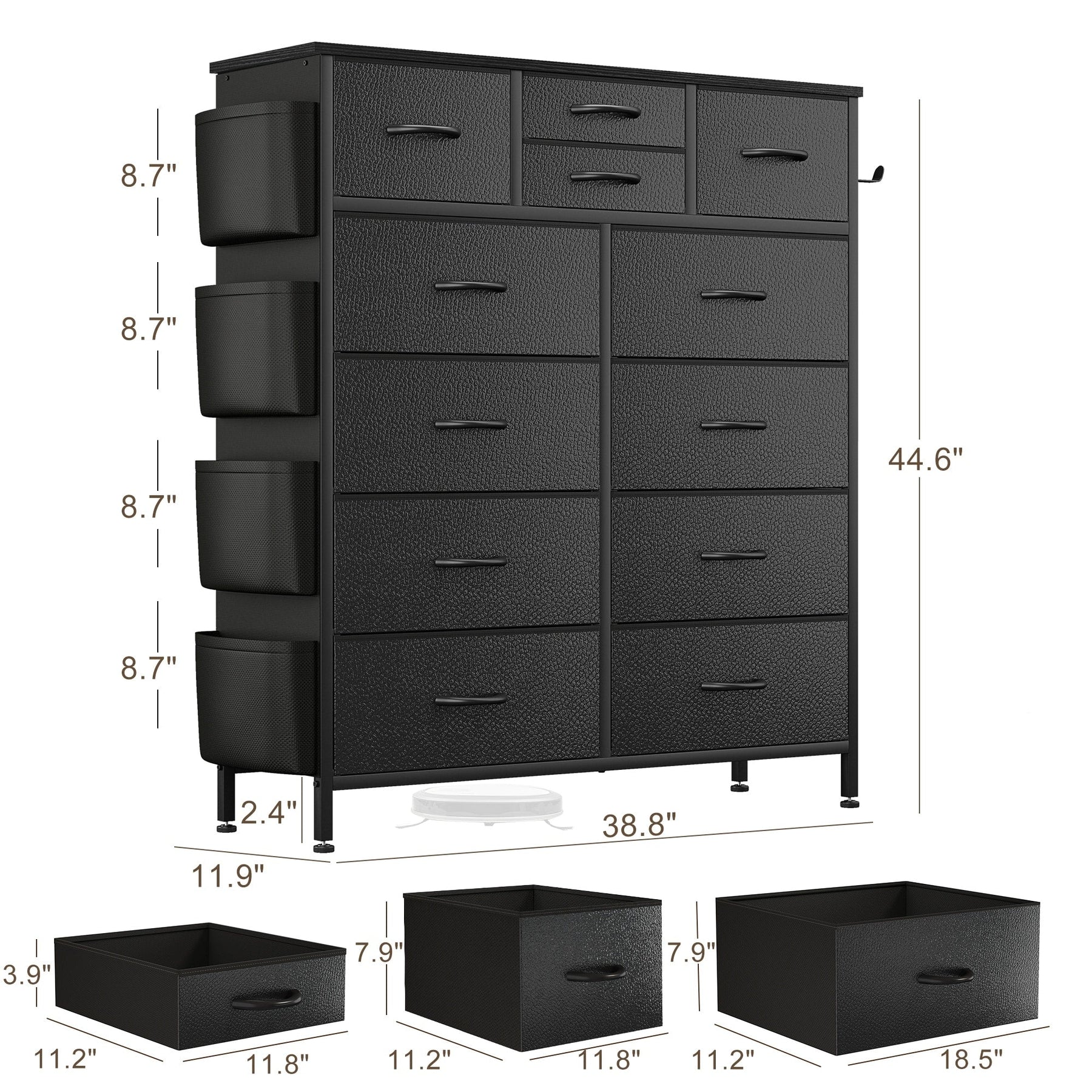 - 【Ample Storage Space】Roomy capacity with 12 deep fabric drawers. 3 different sizes of fabric drawer chests are great for organizing your clothes, blankets, scarves, socks, and others.