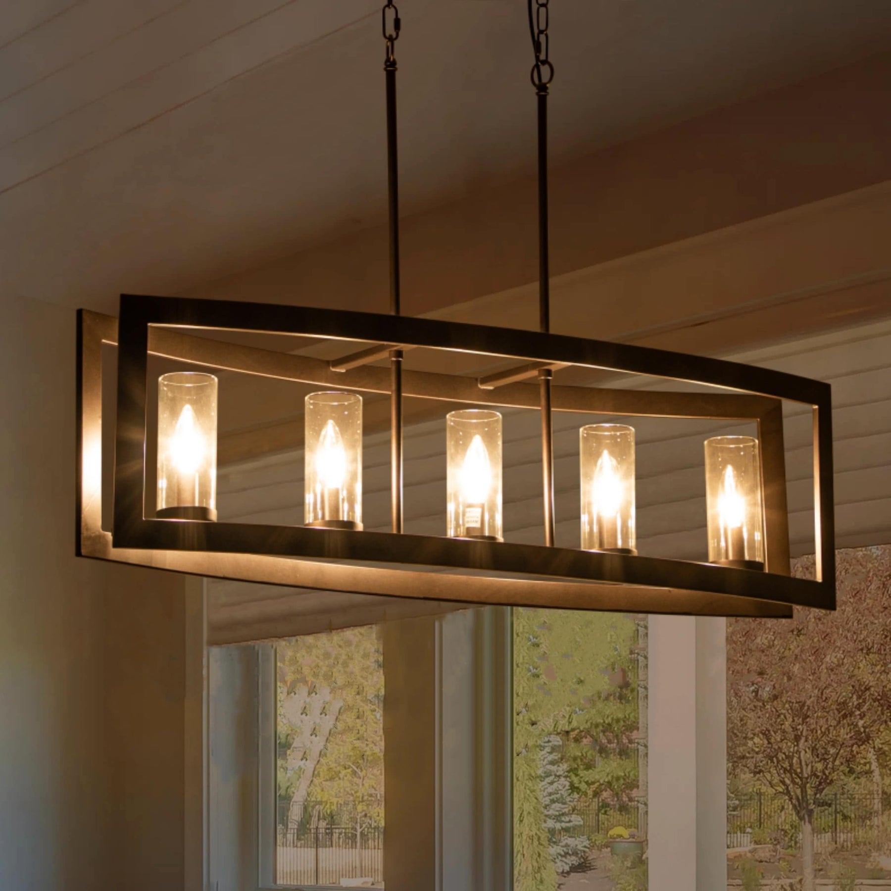 5-Light Modern Industrial Linear Chandelier for Dining Room Farmhouse Cylinder Clear Glass Chandelier Kitchen Island Lights