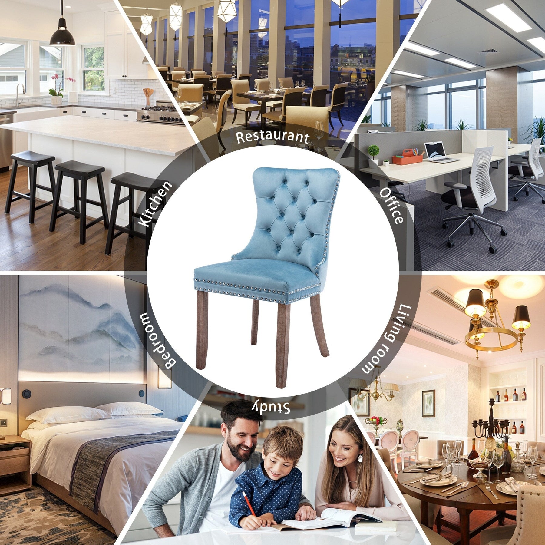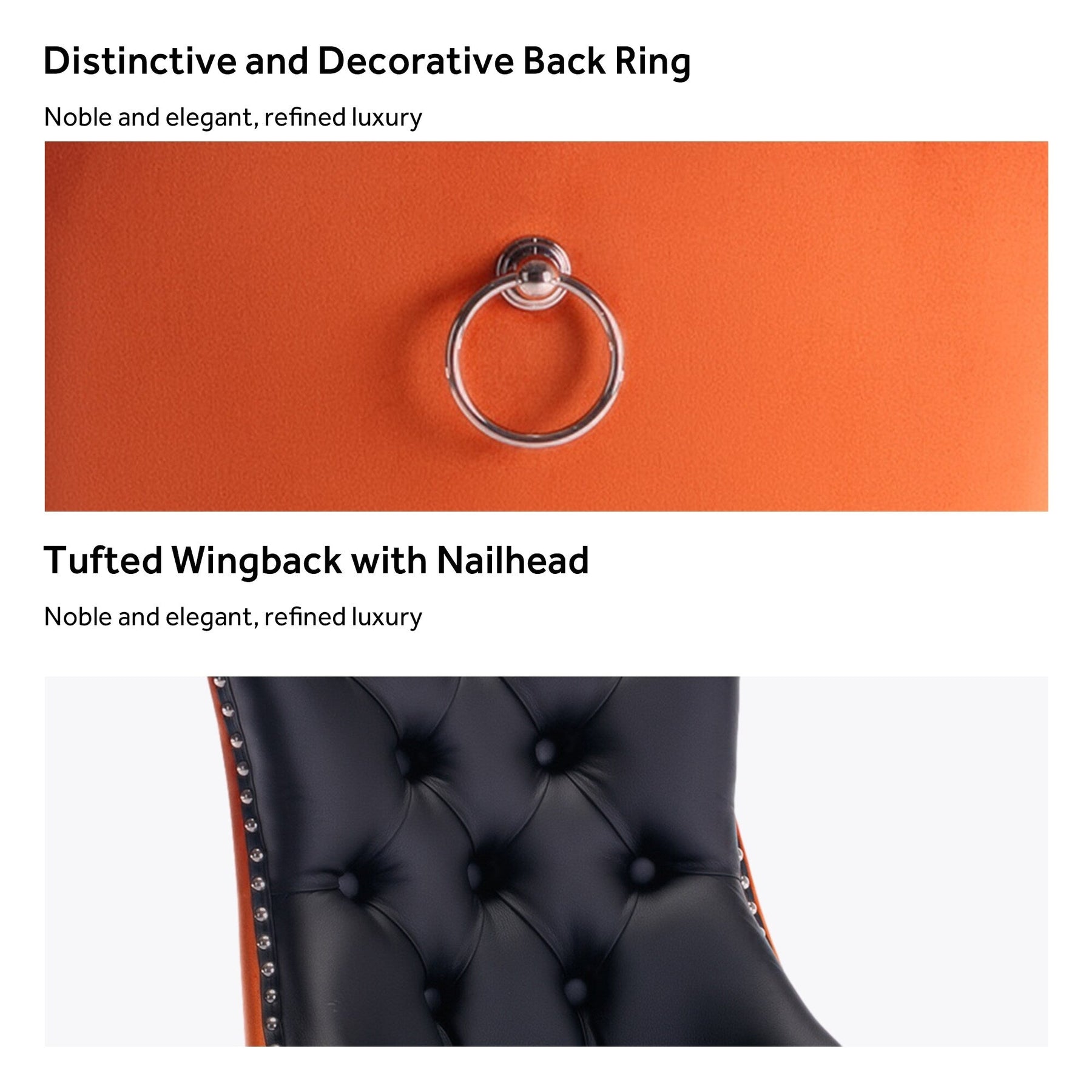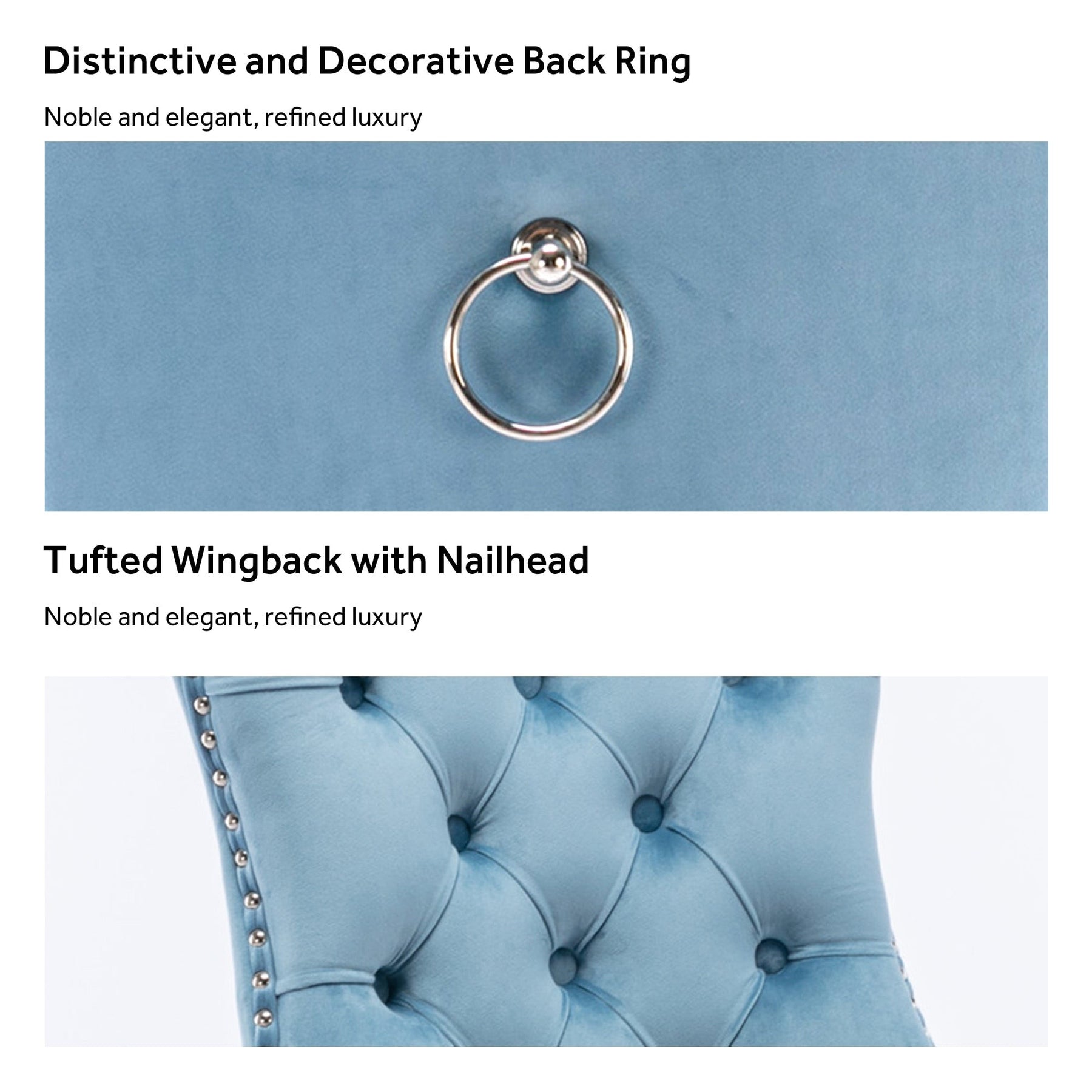 These wingback dining chairs are made of high-quality velvet fabric, which has super wear resistance and will not fade, the fabric is thick and luxurious, the touch is very delicate. This velvet dining chairs set featuring a very modern mid-century look. This dining chair set is equipped with high backrest for a strong comfortable back support. Plenty decorative rivet inset around cushion and back not only make it looks noble and elegant but also give the whole chair a feeling of exquisite luxury. We provide assembly instructions and assembly videos. If you have any questions, please contact us.