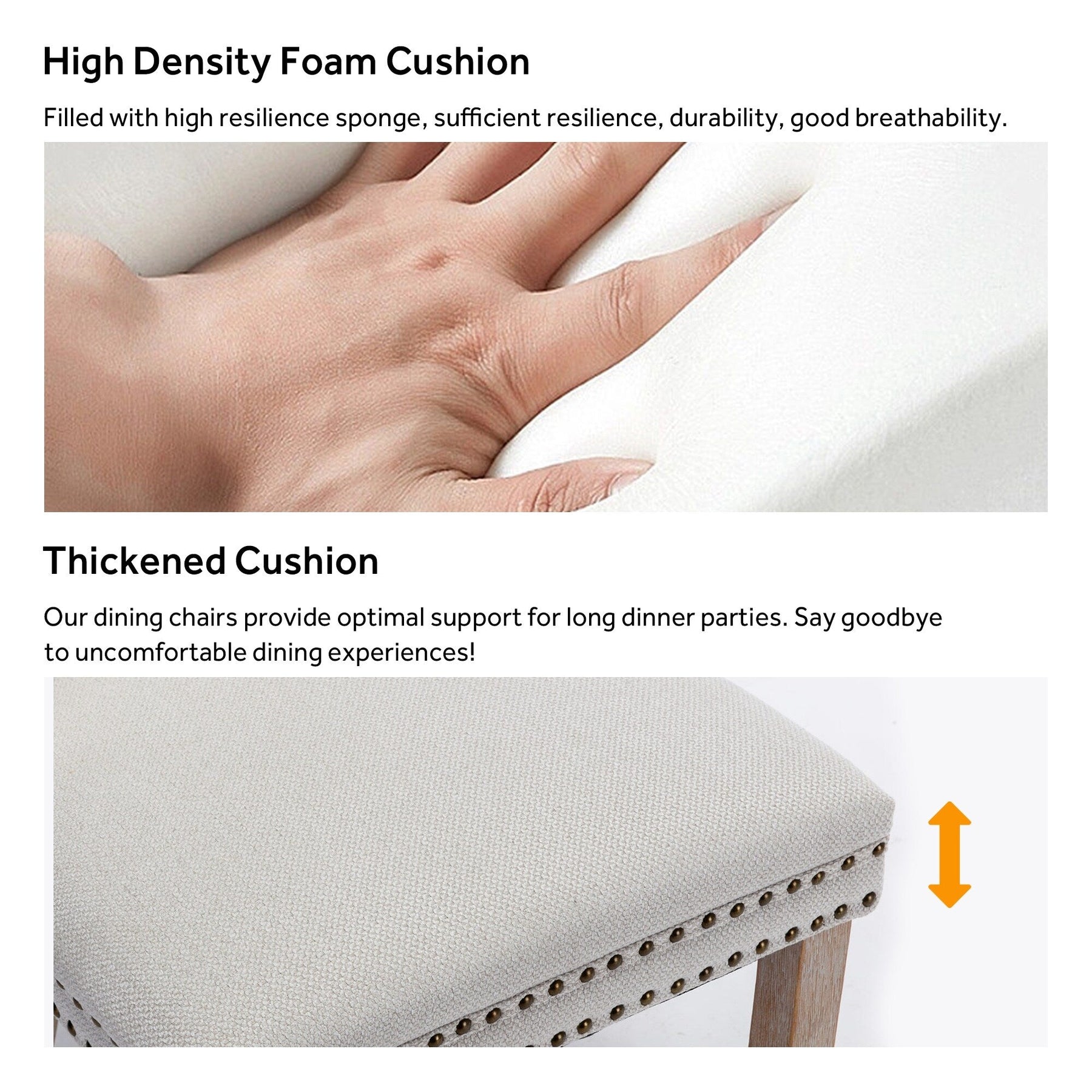 - Sturdy Upholstered Dining Chairs: The chair's frame and legs are made of solid wood with enough security to hold up to 300 pounds.