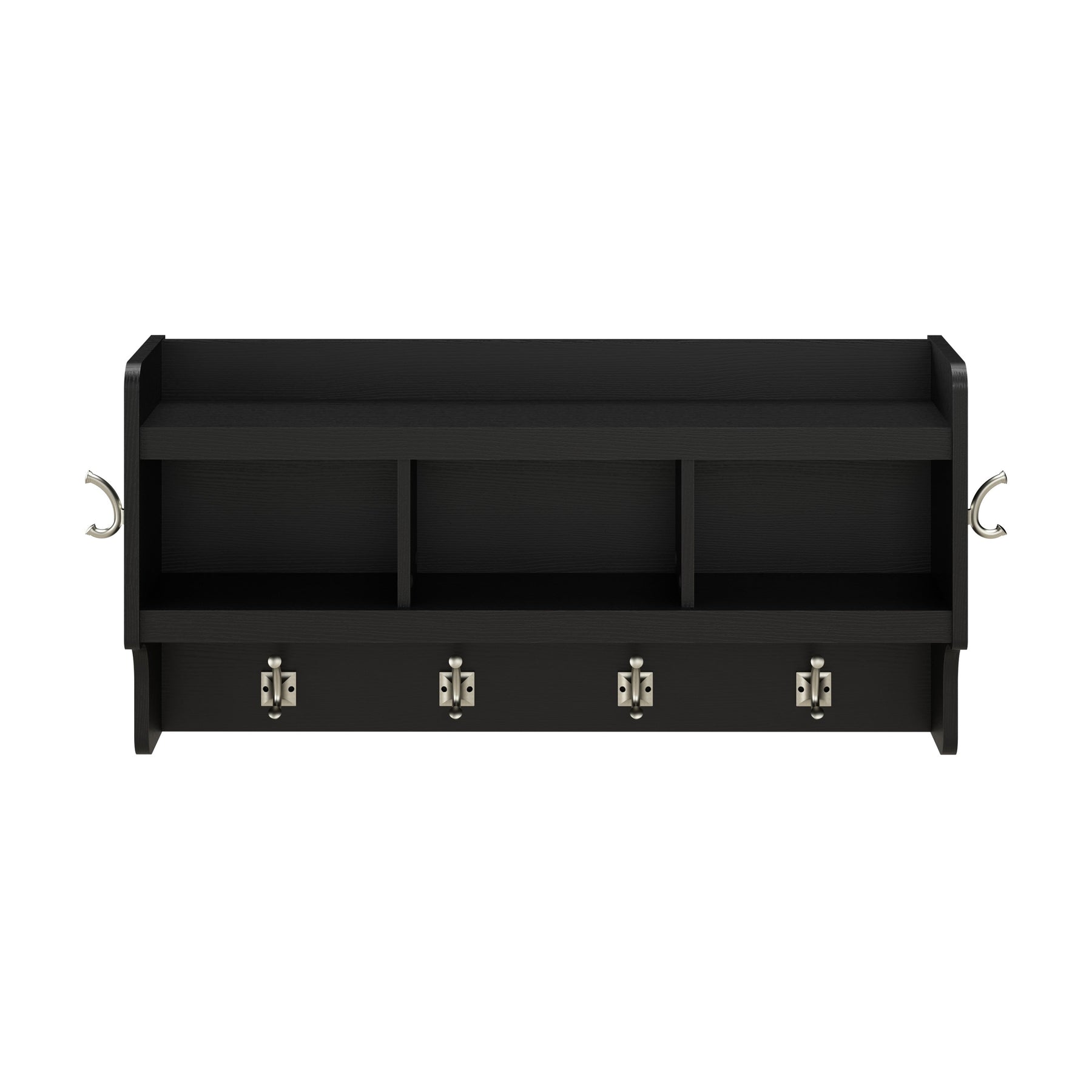 • Wall shelf includes four double-prong coat hooks in the front and one on each side to hang jackets, hats, scarves and more